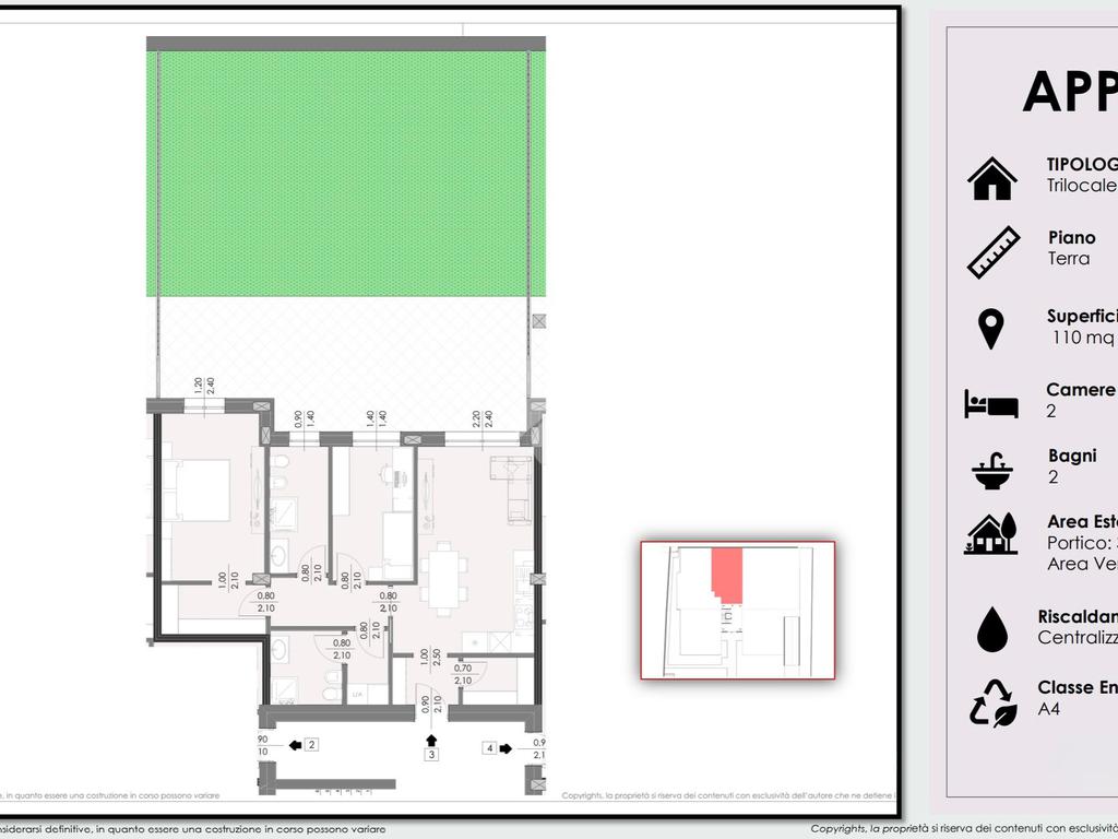 Le unità abitative saranno realizzate in Classe Energetica A4, sinonimo di altissimo risparmio energetico, sostenibilità e comfort.